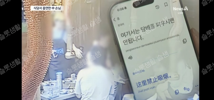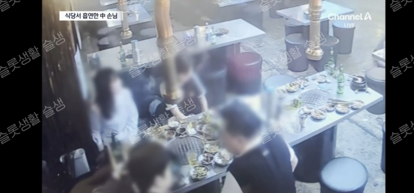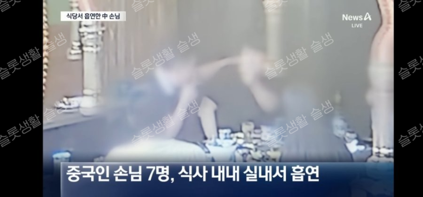 식사 내내 3시간 흡연 중국 손님