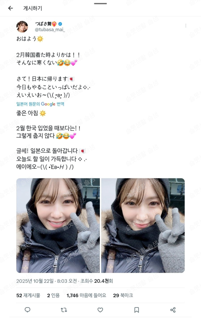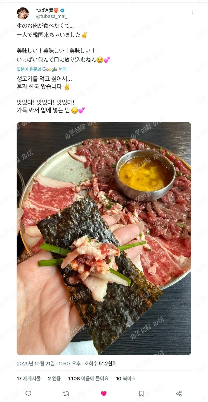 한국에 육회 먹으러 온 츠바사 마이