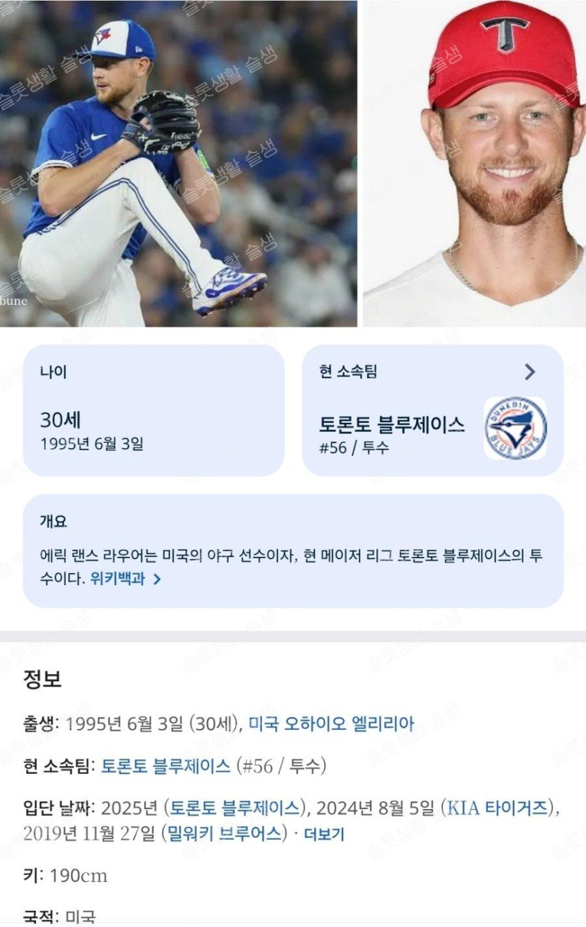 토론토 투수 라우어가 기아에 있던 선수네요 ㄷㄷ