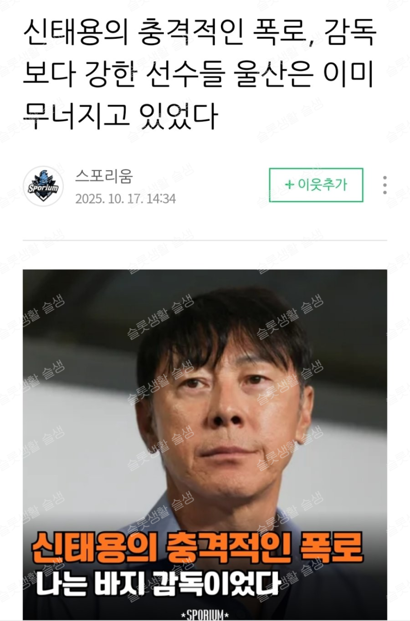 [자유게시판] 발 밟고 "귀머거리냐"…따귀 논란 신태용, 폭행 더 있었다2025-12-15
