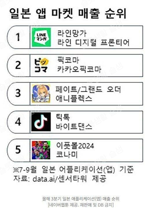 일본 스마트폰 앱마켓 매출 순위 ㄷㄷ
