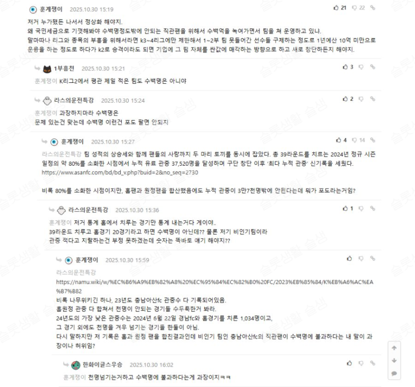 저조한 관중수를 지적한 사람이 있는데 거기에 대고 관중 1천명은 된다 2천명은 된다