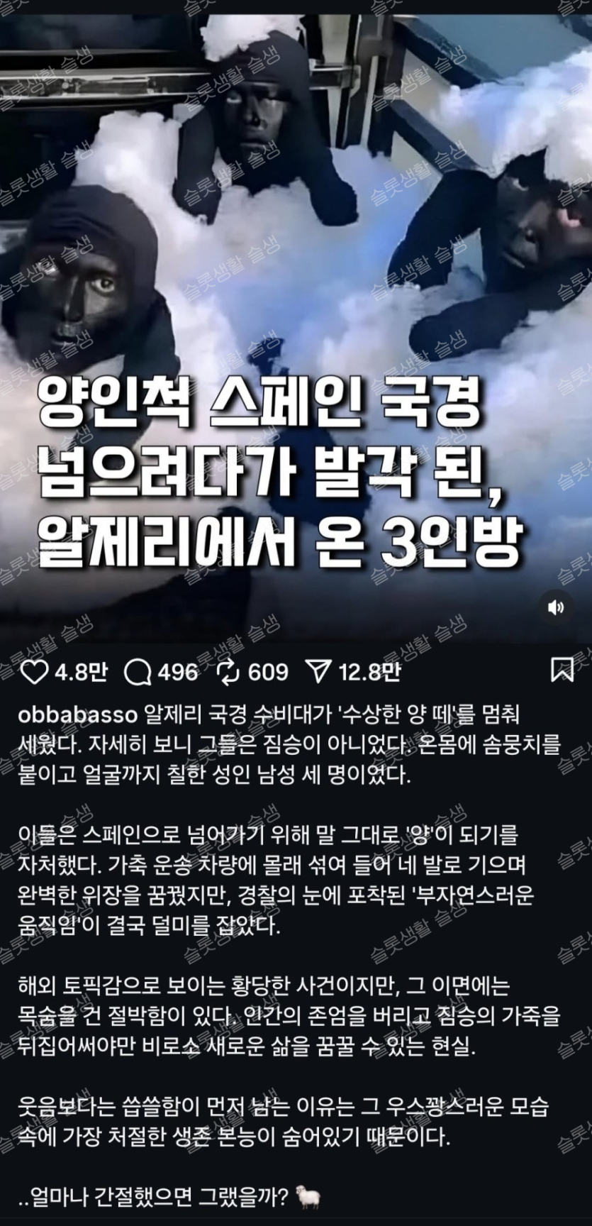 [자유게시판] '양'인척 동물 위장하고 국경 넘으려던 알제리인2025-11-23