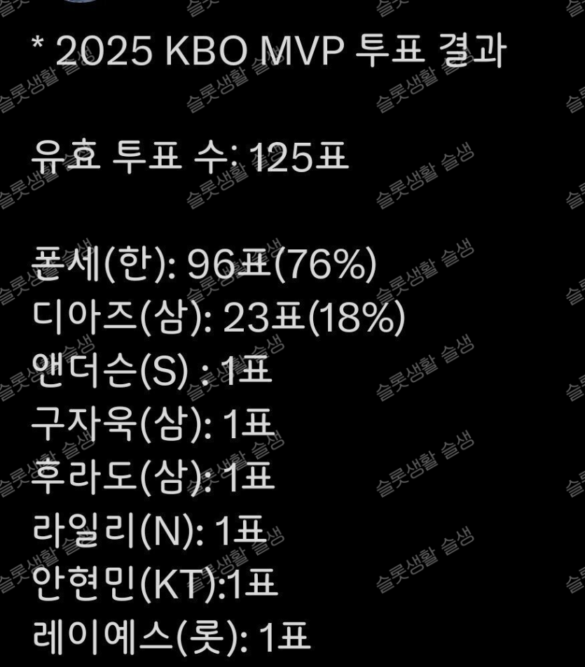 크보 MVP 신인왕 투표결과