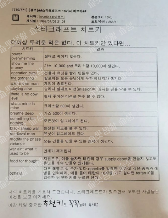 와 오랫만에 보는 스타 치트키네요 ㅋㅋㅋㅋ 이건 꼭 소장입니다