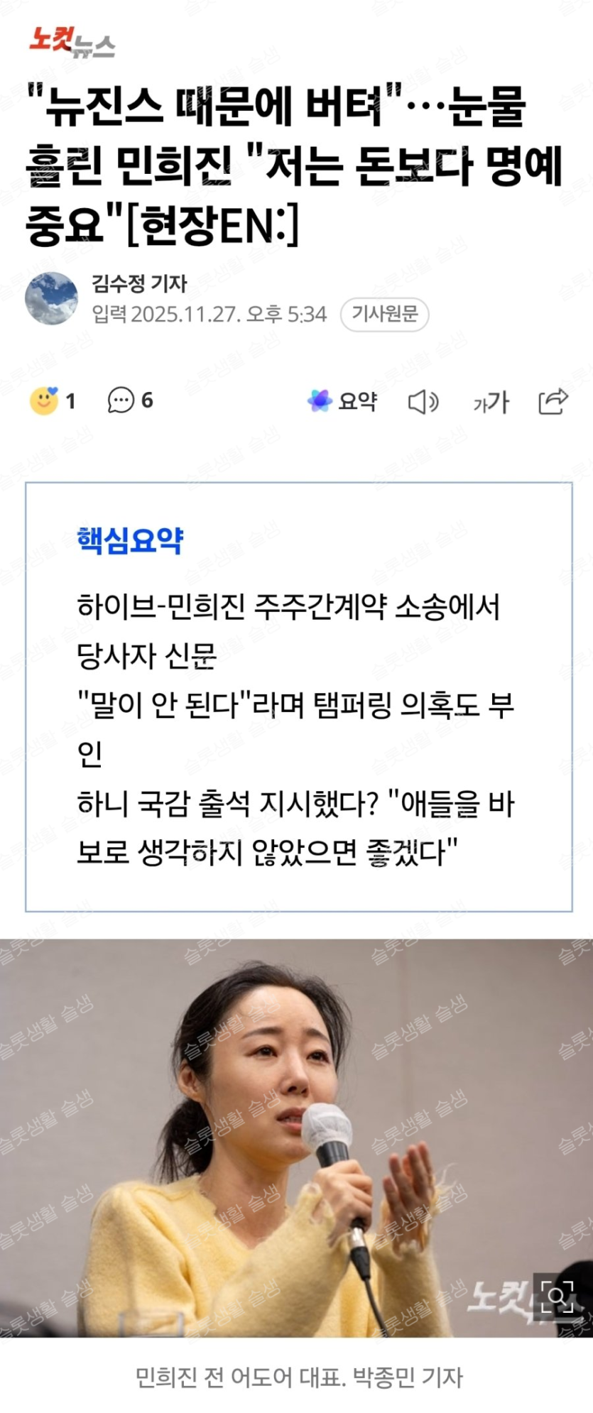 눈물 흘린 민희진 저는 돈보다 명예 중요