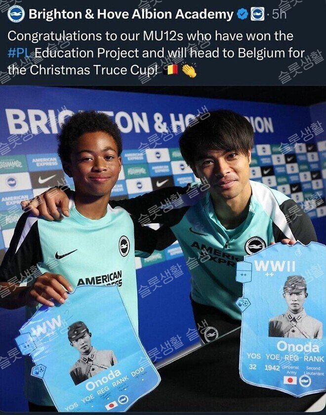 브라이튼은 최근 유스팀이 참가한 크리스마스 트루스컵 홍보 게시물에 일본 국가대표 미토마 가오루와 U-12 선수 사진을 함께 배치했는데 문제는 그 아래에 제2차 세계대전 당시 일본 육군 장교 오노다 히로오의 이미지를 노출했다는 점이다.