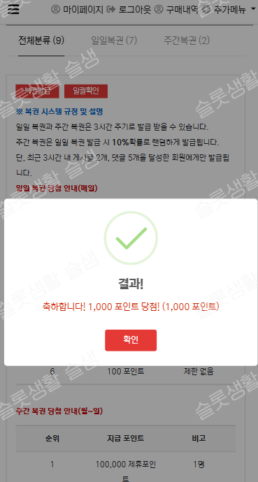 축하합니다. 행운의 포인트 241포인트를 획득하였습니다.