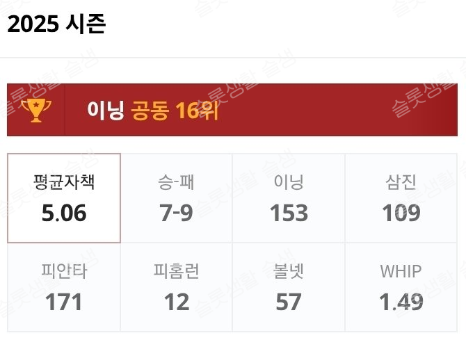 양현종 네임드에 비해 성적이 아쉽다 할 뿐이지