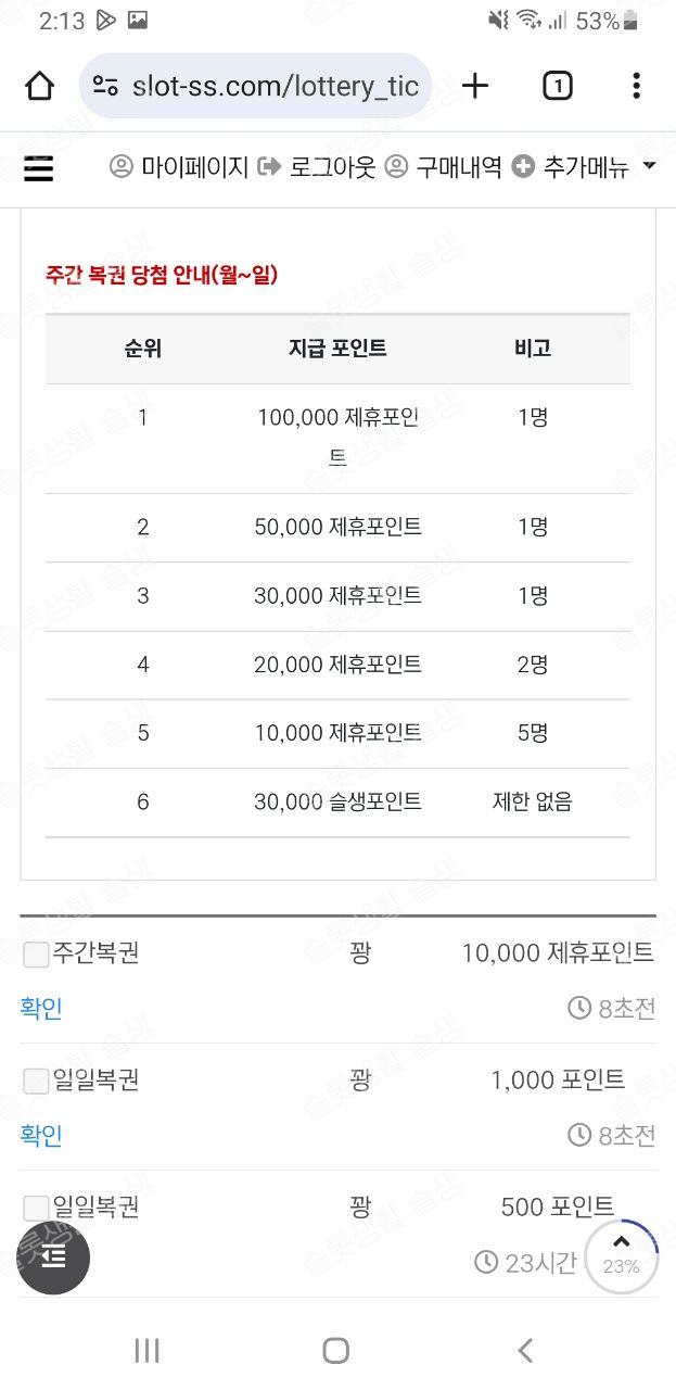 축하합니다. 행운의 포인트 113포인트를 획득하였습니다.