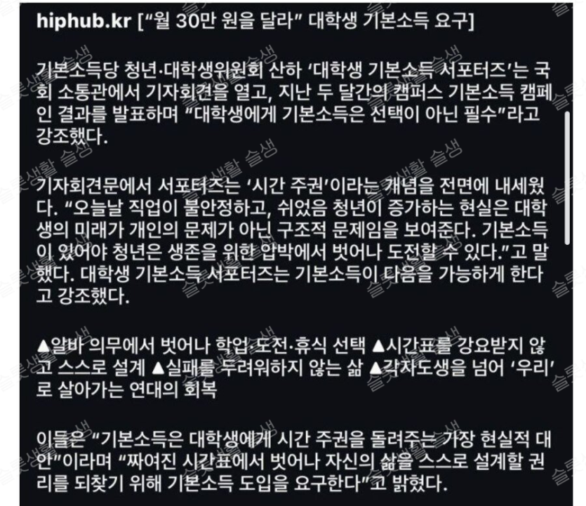 대학생 기본 소득 30만원 요구