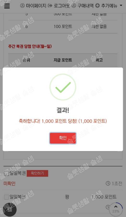 축하합니다. 행운의 포인트 271포인트를 획득하였습니다.