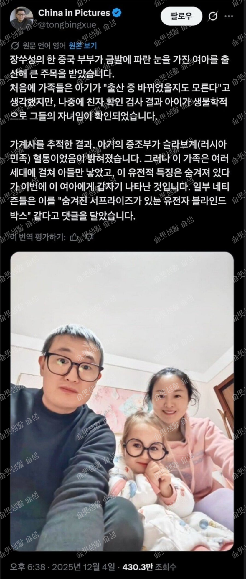 백인을 출산한 중국인 부부
