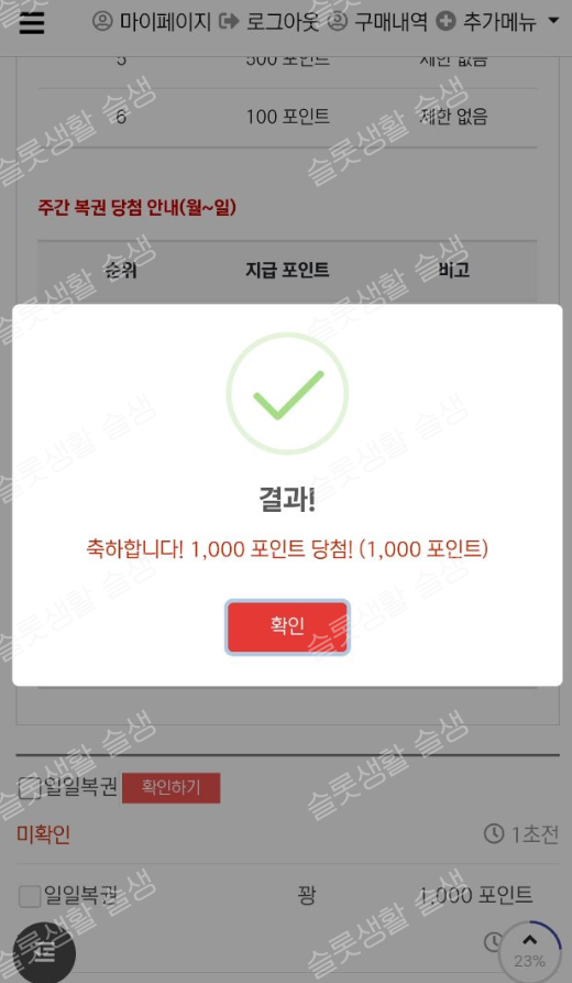 축하합니다. 행운의 포인트 38포인트를 획득하였습니다.