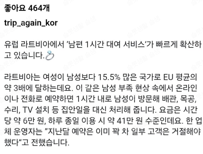 남편을 시간당 6만원에 빌려주는 나라
