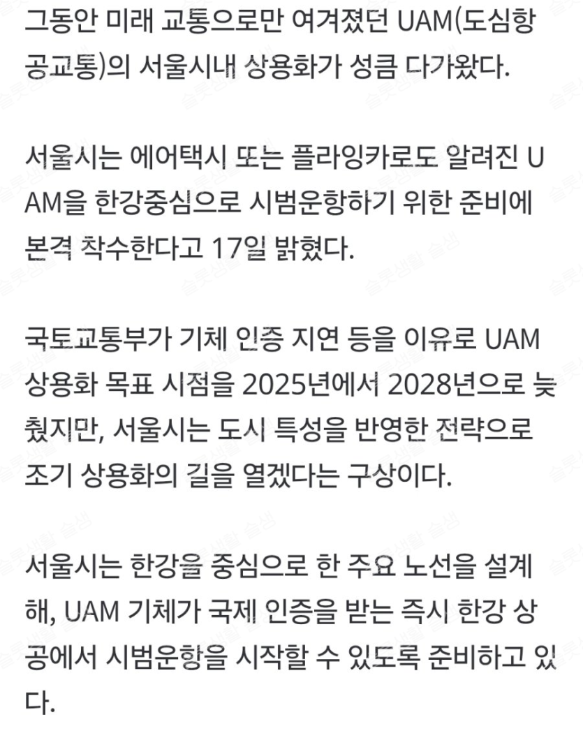 서울시 이번엔 "한강 에어택시" 추진 ㄷㄷ