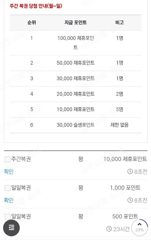 축하합니다. 행운의 포인트 232포인트를 획득하였습니다.