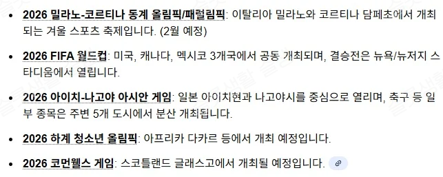 2026년 주요 국제 스포츠 행사 찾아봤네요.