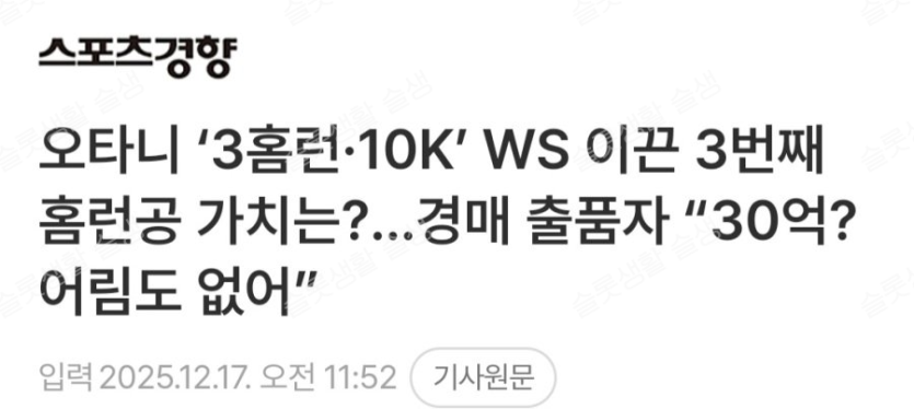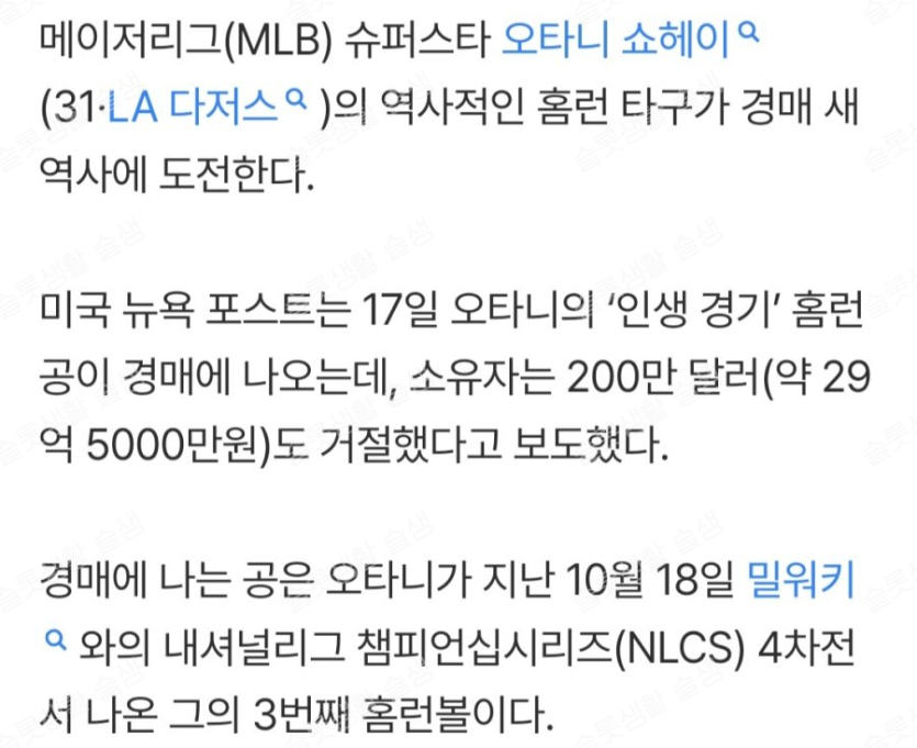 홈런볼을 경매에 내놨는데