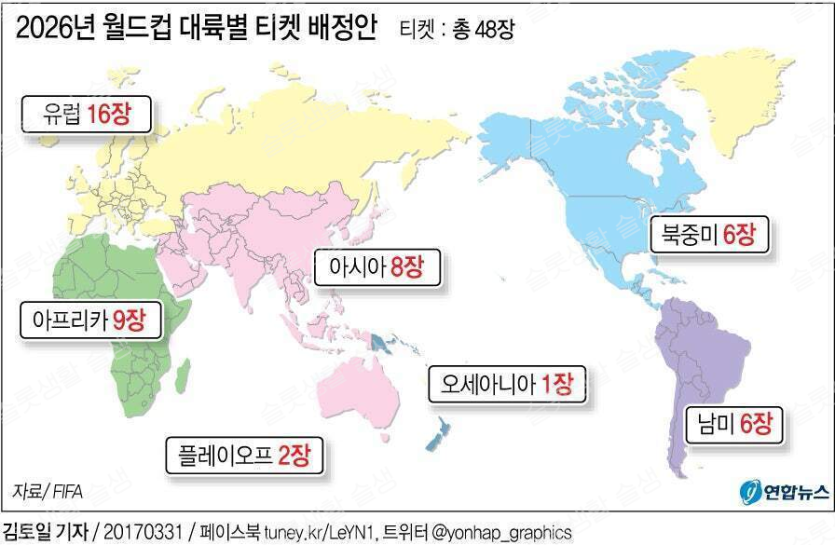 솔직히 월드컵 본선에서 5대0이상 대참사 꽤 많이 나올듯 보이는데 64개국 하면 더 볼만하겠네요.