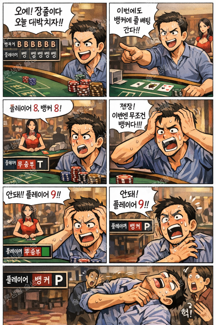 뱅커 장줄 꺾다가 뱅커들어 갔는데 목아지 꺾이는 만화