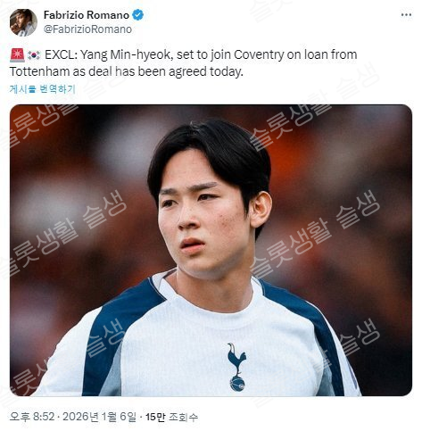 양민혁, 챔쉽1위 코벤트리로 임대이적