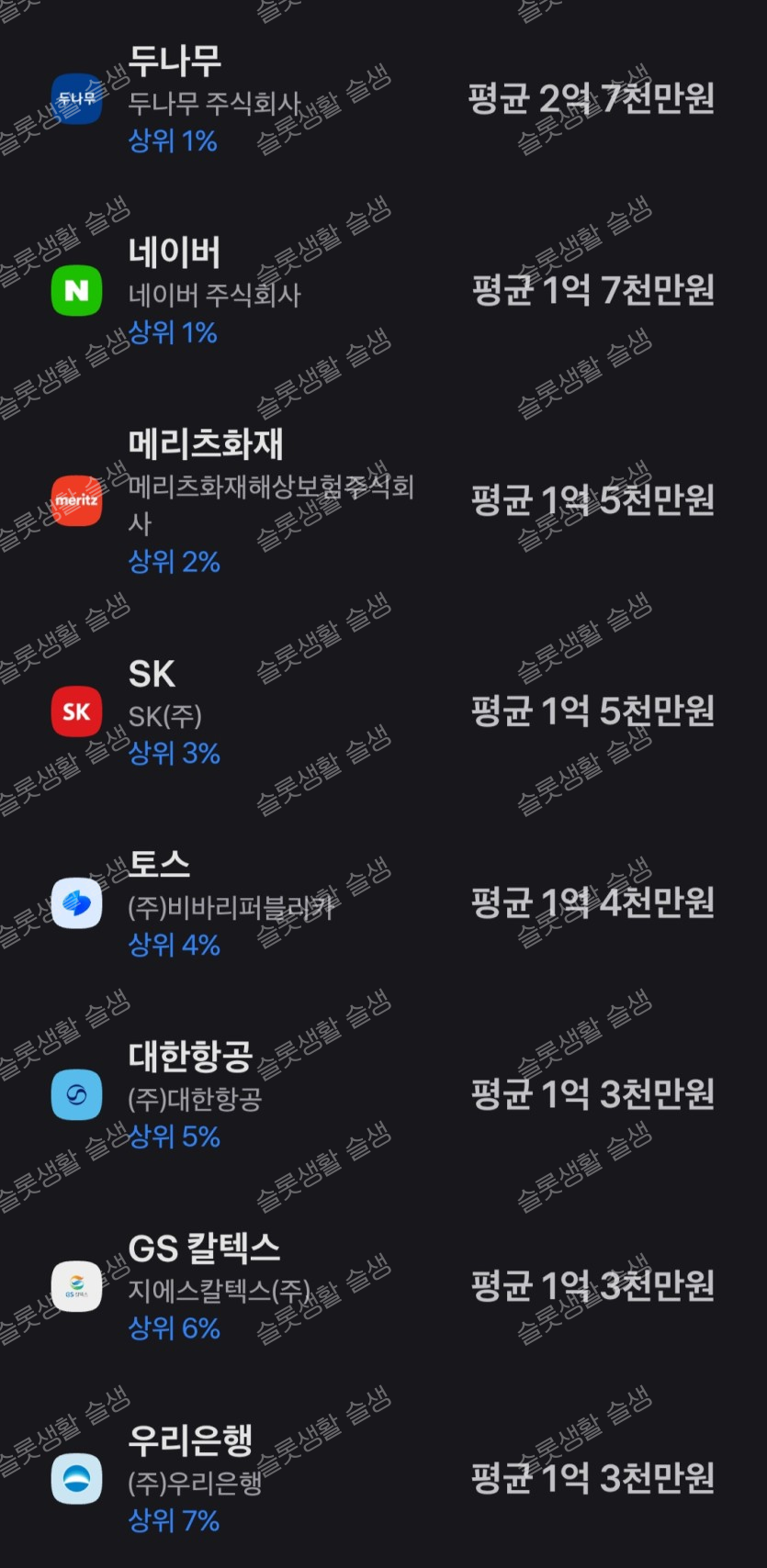 대기업 평균연봉 상위 기업