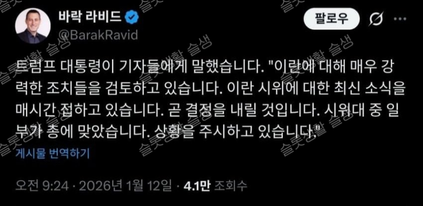 트럼프 "이란이 내 레드라인을 넘었다...곧 결정 내릴 것"