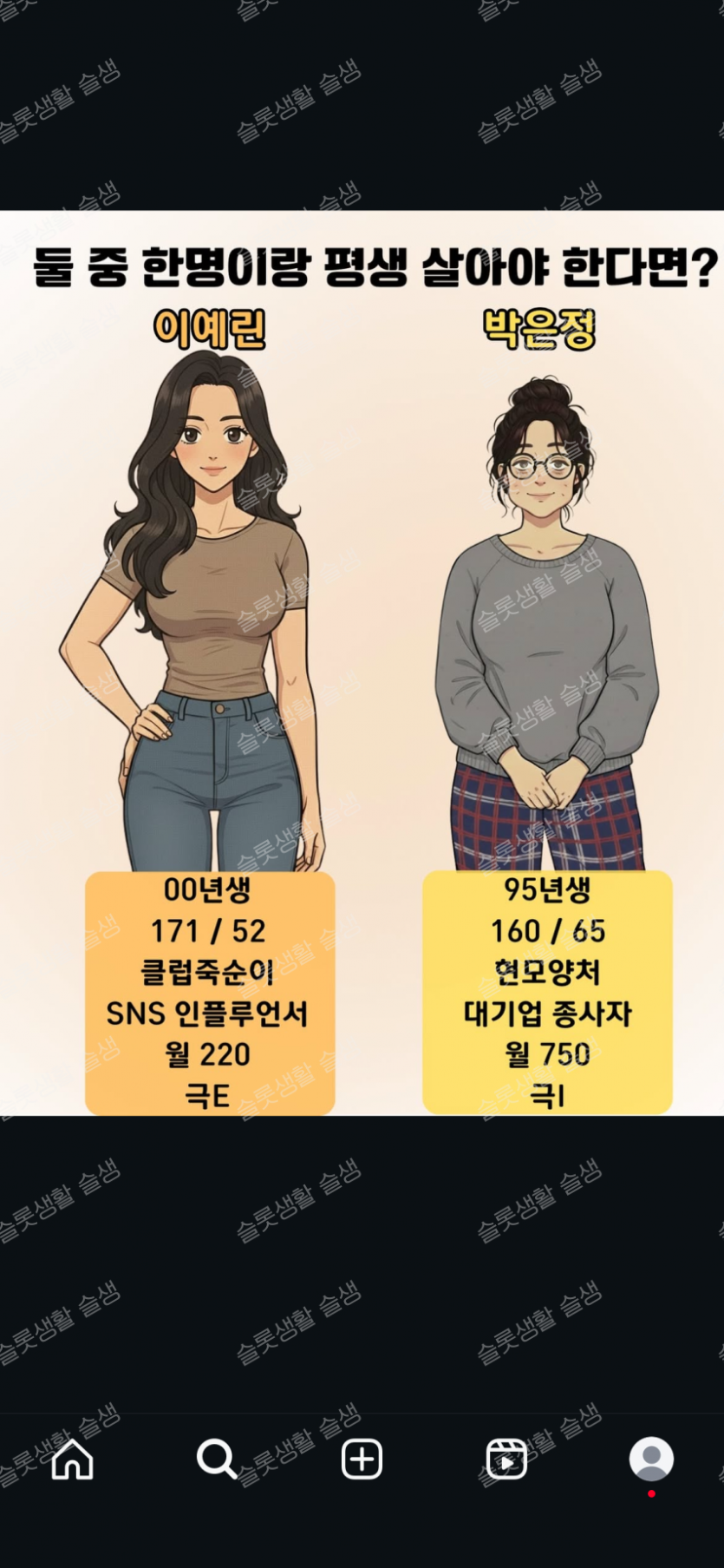 둘 중 한 명과 평생 살아야 한다면?