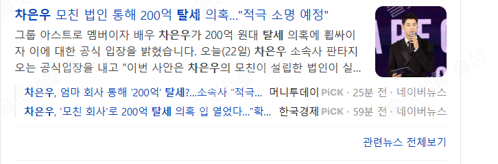 차은우 200억탈세논란