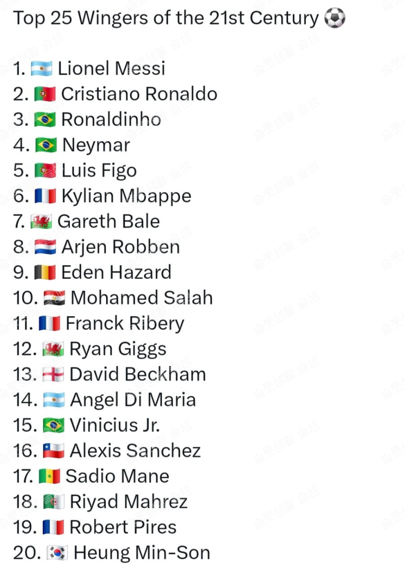 21세기 '윙어' 축구선수 서열