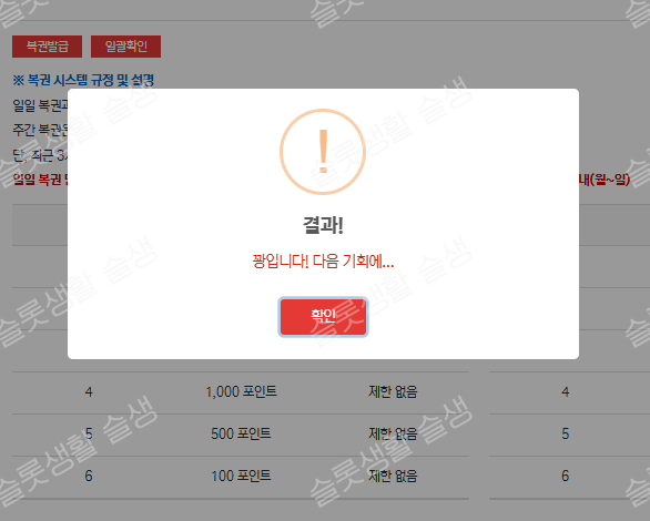 축하합니다. 행운의 포인트 85포인트를 획득하였습니다.