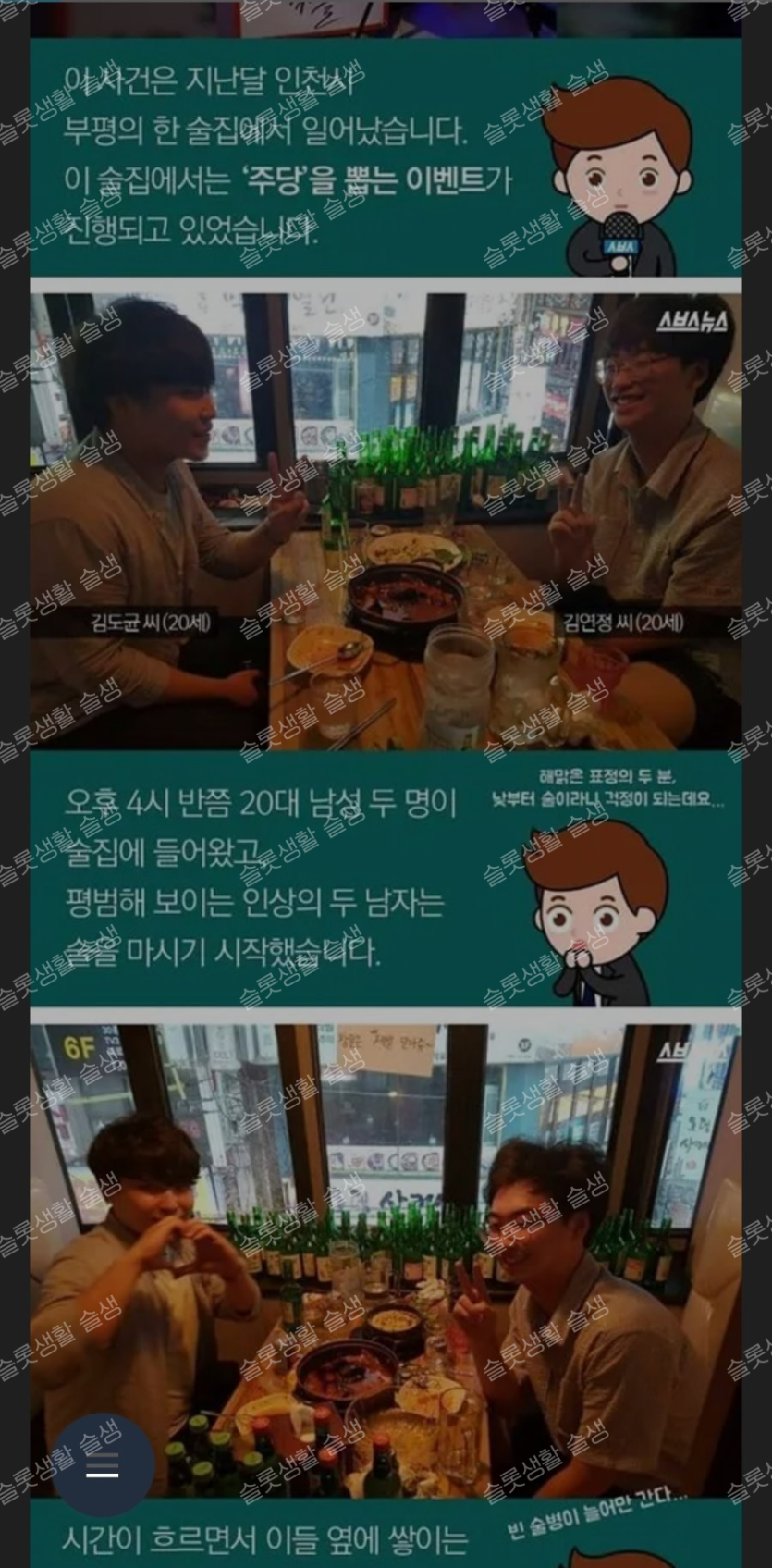 남자 2명이서 소주 80병 마시기