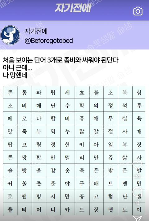 처음 보이는 단어 3개로 좀비와 싸워야 된다