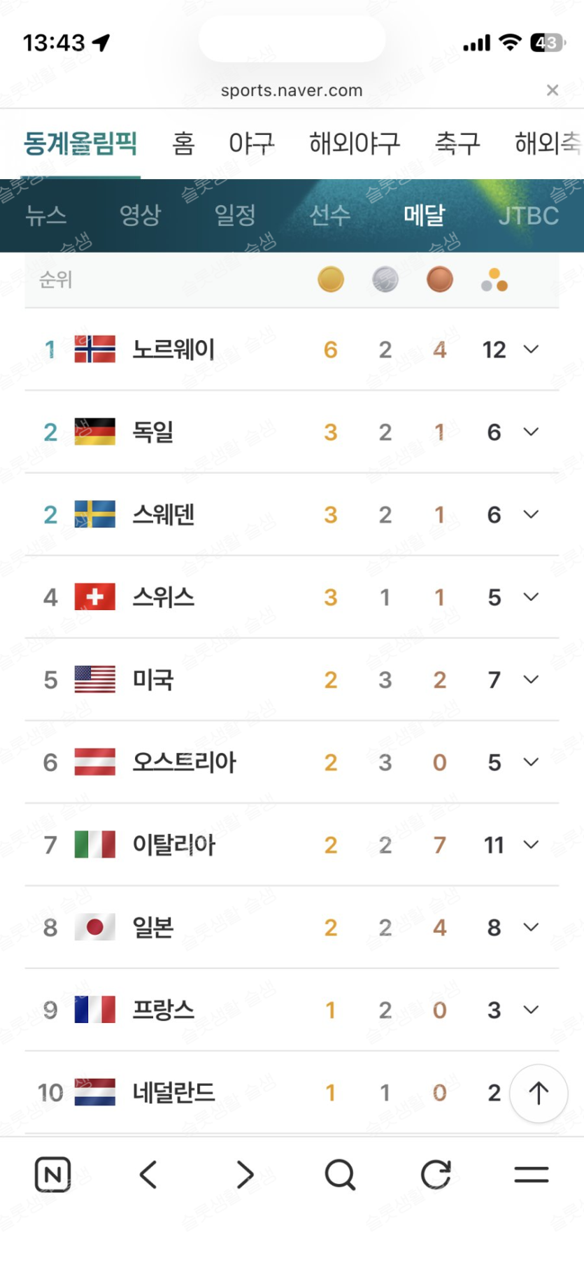 동계올림픽 상위권은 다 선진국들 차지네요