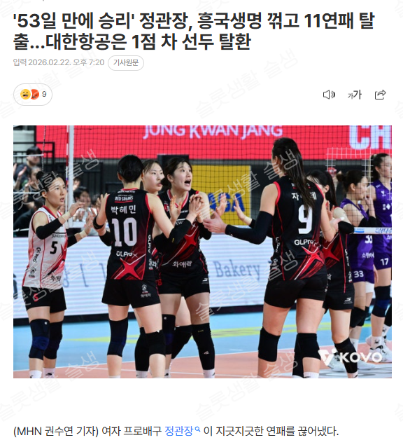 정관장 너무 져서 몰랐는데 11연패였구나