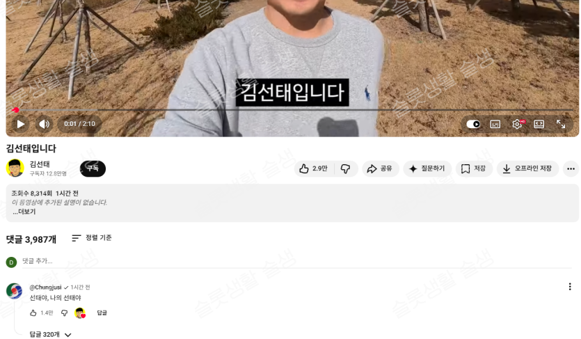 김선태 바로 구독자 떡상중ㄷㄷ 영상 나왔네요
