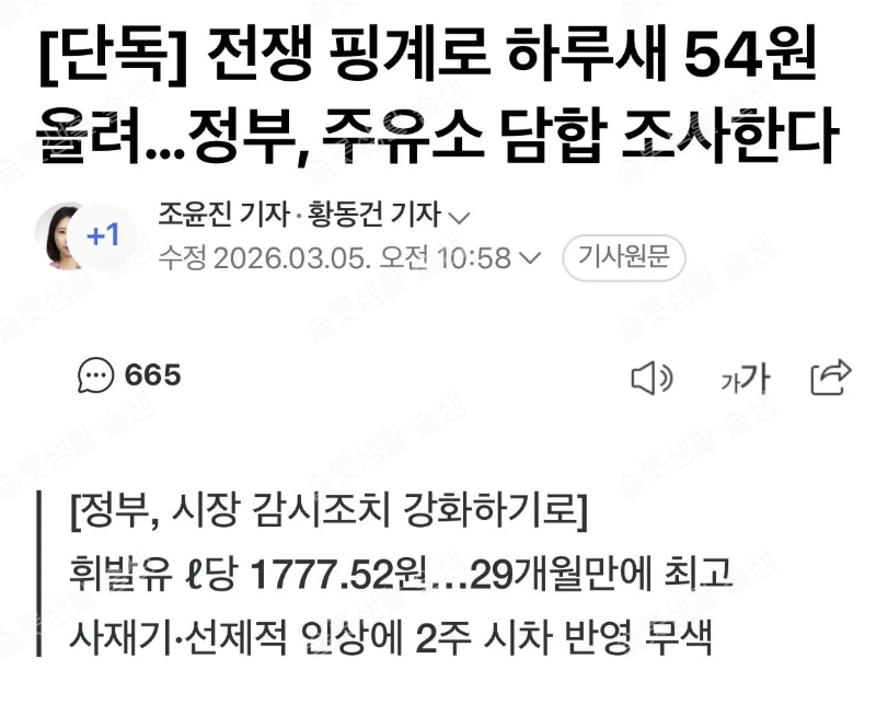 냄새가 난다 조사하라!!! 기름값 이거 뭐야
