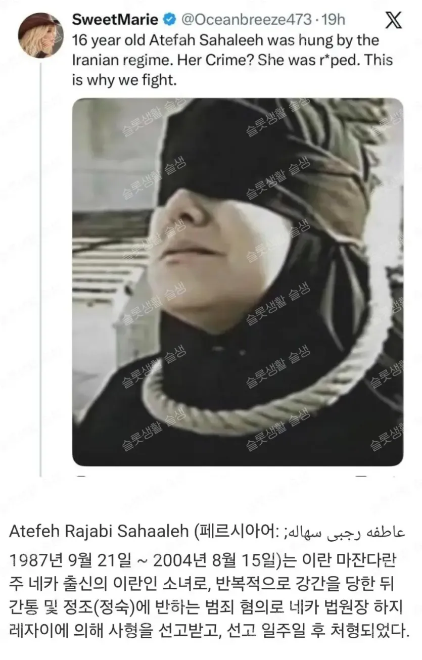 이란에서 교수형 당한 16세 소녀