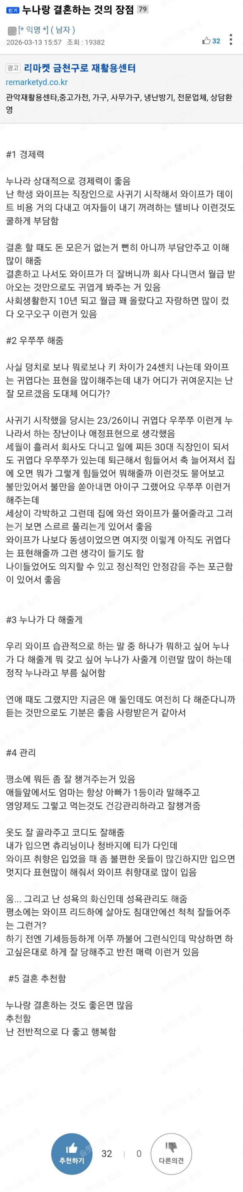 누나랑 결혼하면 좋은 점
