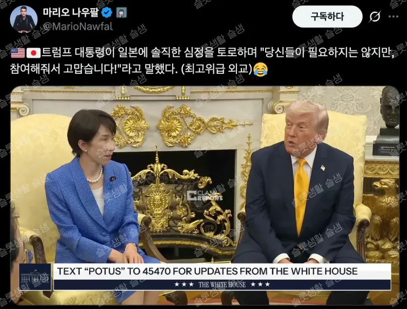 트럼프, "일본 필요 없었지만 와줘서 고맙다"