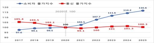 | ▲ 연도별 통신물가지수 현황(국가데이터처) |