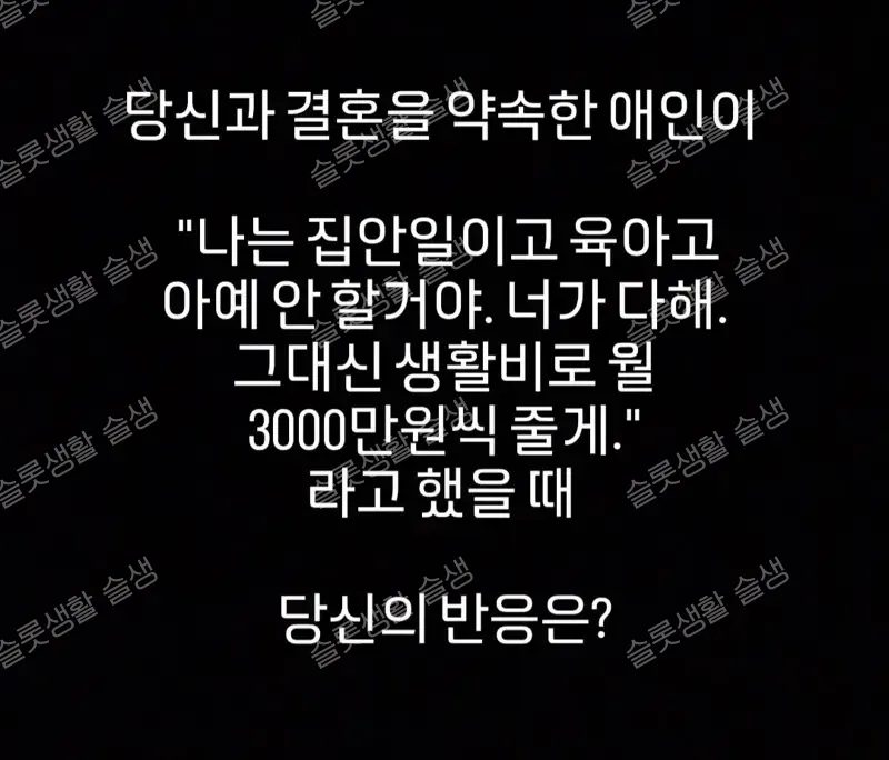 결혼예정 상대방이 집안일이고 육아고 아예 안 하겠다면 당신의 선택은?