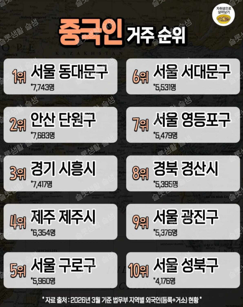 국내 중국인 거주 순위