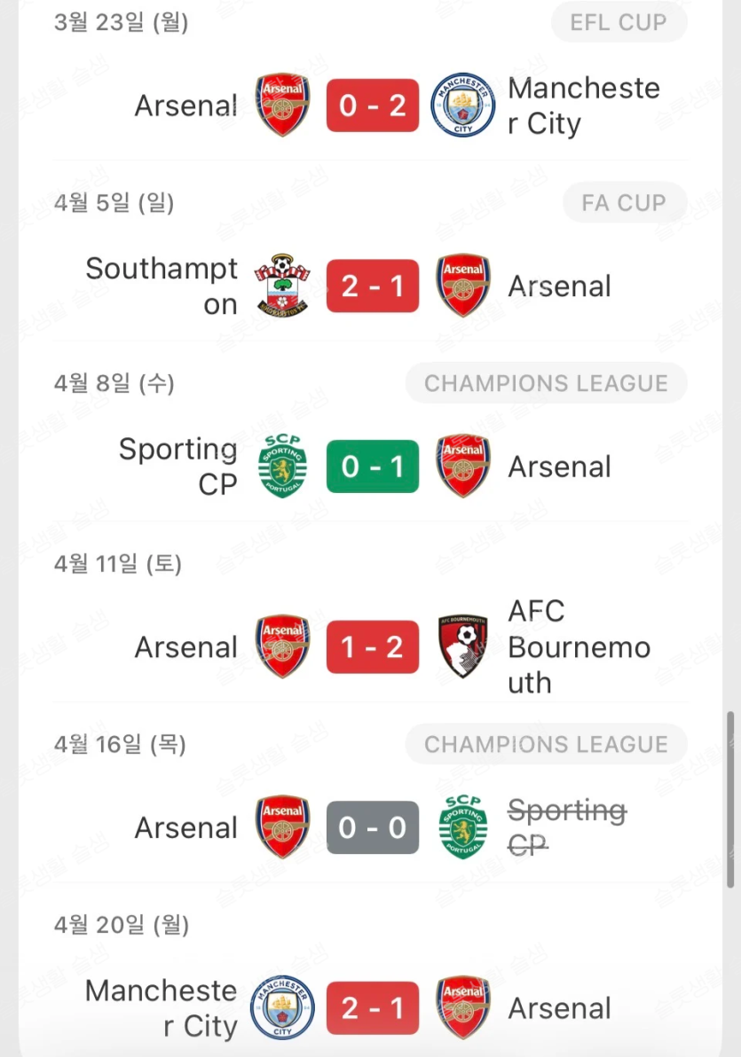 아스날 최근 6경기
