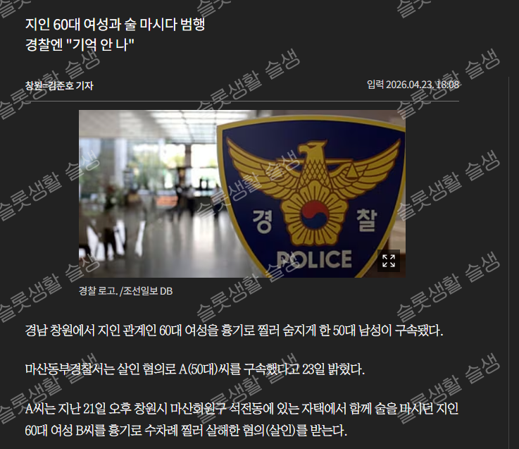 [자유게시판] "손 베였다" 만취 상태로 119 신고한 50대… 집안엔 지인 여성 숨져 있었다2시간 43분전