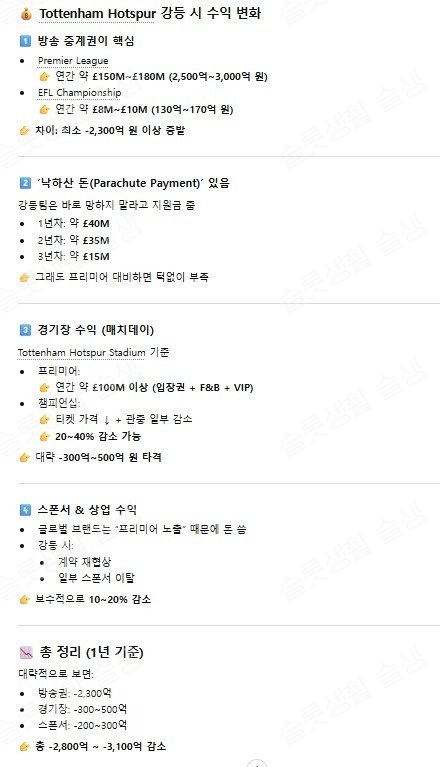 토트넘 강등되면 바로 못 올라올 확률이 크네요.