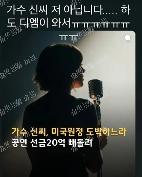 이와 함께 공개한 사진에는 여가수 실루엣에 '미국 원정 도박하느라 공연 선금 20억 빼돌려'라는 문구가 적힌 SNS 사진도 캡처해 올렸다.