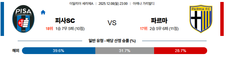 12월08일 피사SC:파르마 세리에A 분석 및 예측