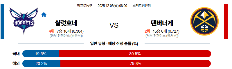 12월08일 샬럿:덴버 NBA 분석 및 예측